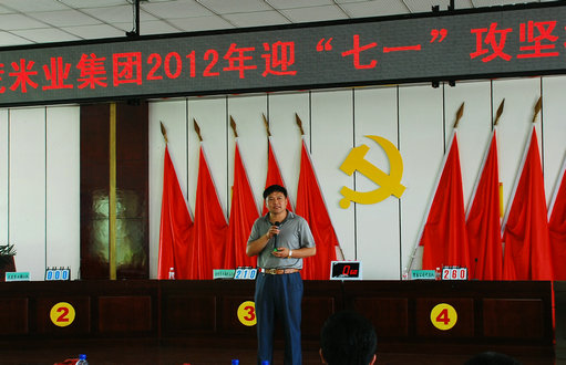 6月29日,北方邊陲小鎮前進農場機關會議室內,一輪激烈的知識競賽正在進行。北大荒米業總部與43個經營單位經過初賽、選拔賽選出的18員工,分成6個代表隊正在臺上進行著激烈的對壘角逐。