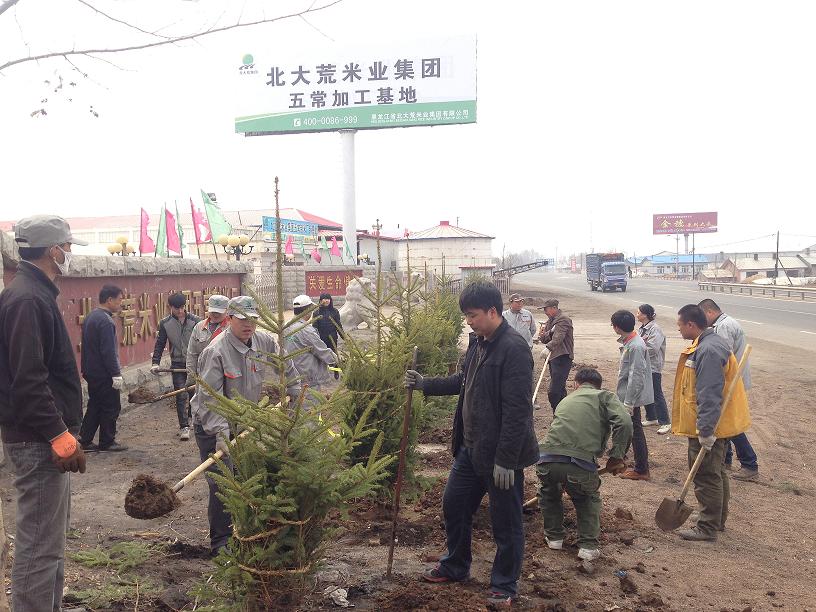 2015 年4月19日,五常制米廠員工都早早的就來到單位門口忙活起來,走近一看原來大家是在忙著種樹。由于五常制米廠環境較為艱苦,為了改善這一局面,米廠領導班子決定給廠區綠化。利用周末時間,米廠領導帶領全體員工進行植樹,大家都非常積極參加勞動,將基層員工能吃苦肯出力的精神表現的淋漓盡致。正因為全體員工心往一處想,勁兒往一處使,再多的活兒在大家面前也顯得微不足道了。僅僅用了一天的時間,大家就完成了廠區外及廠區內的綠化任務?粗鴱S區生機勃勃的新面孔,員工的臉上都露出了自豪和欣慰的笑容。