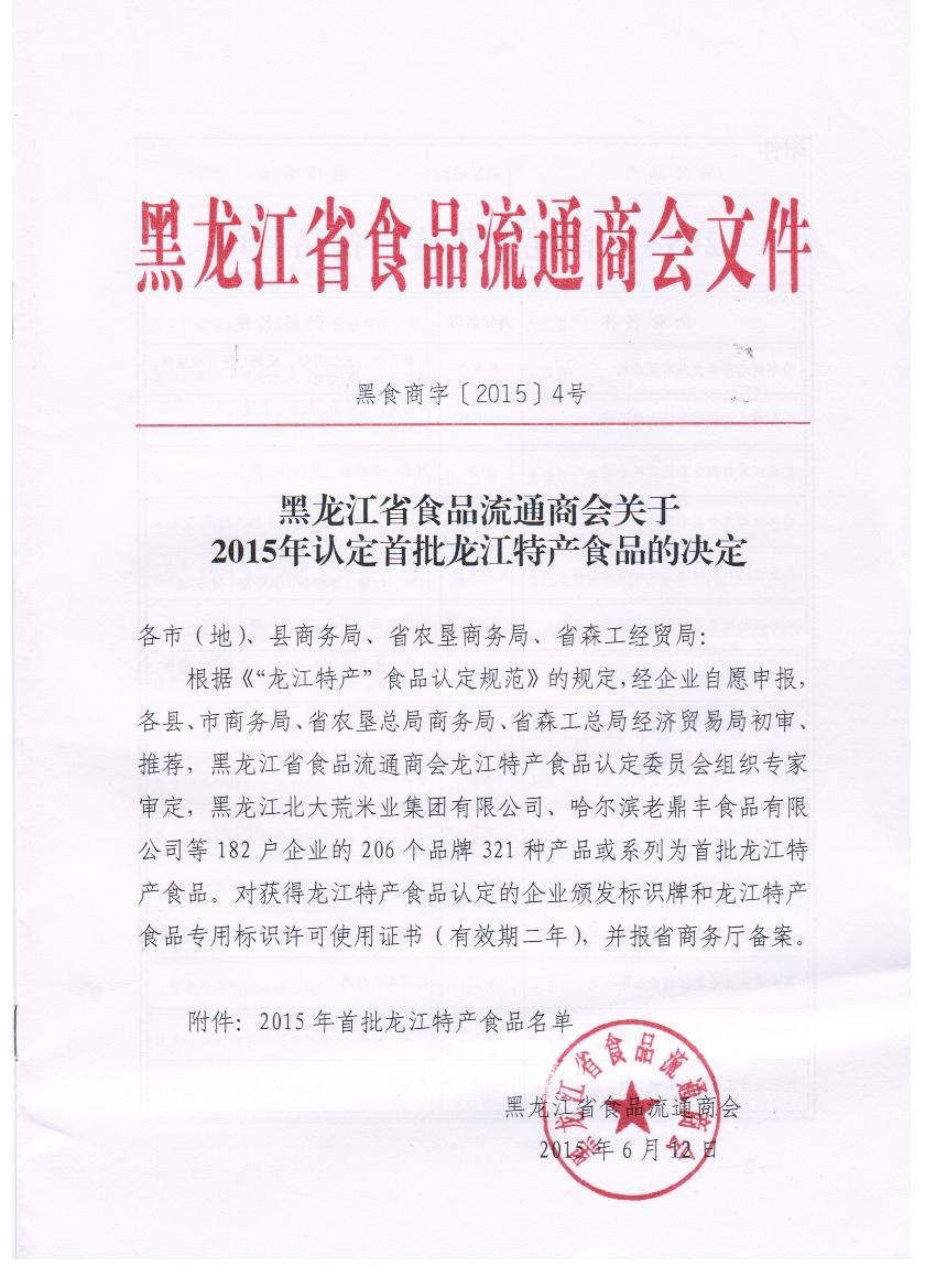 北大荒米業(yè)榮獲首批龍江特產(chǎn)食品專(zhuān)用標(biāo)識(shí)黑龍江省食品流通商會(huì)龍江特產(chǎn)食品認(rèn)定工作會(huì)議在和平邨賓館舉行。黑龍江北大荒米業(yè)集團(tuán)有限公司大米系列產(chǎn)品被認(rèn)定為首批“龍江特產(chǎn)食品”,并獲得了“龍江特產(chǎn)食品”專(zhuān)用標(biāo)識(shí)的許可使用證書(shū)。對(duì)獲得龍江特產(chǎn)食品認(rèn)定的企業(yè)頒發(fā)標(biāo)識(shí)牌和龍江特產(chǎn)食品專(zhuān)用標(biāo)識(shí)許可使用證書(shū)(有效期二年),并報(bào)省商務(wù)廳備案。 為加快落實(shí)省領(lǐng)導(dǎo)“轉(zhuǎn)變經(jīng)濟(jì)發(fā)展方式,依托優(yōu)勢(shì)資源發(fā)展特色經(jīng)濟(jì)”的指示精神,更好地保護(hù)黑龍江省特產(chǎn)食品品牌,推廣龍江特產(chǎn)食品品牌形象,提高我省特產(chǎn)食品的市場(chǎng)占有率和競(jìng)爭(zhēng)力,推動(dòng)龍江特產(chǎn)食品企業(yè)創(chuàng)新發(fā)展,黑龍江省食品流通商會(huì)根據(jù)黑龍江省商務(wù)廳的工作指導(dǎo)意見(jiàn),在全省范圍內(nèi)開(kāi)展了龍江特產(chǎn)食品認(rèn)定工作。 獲得“龍江特產(chǎn)食品”的企業(yè)或品牌按《“龍江特產(chǎn)食品”標(biāo)識(shí)使用規(guī)定》可以在相應(yīng)產(chǎn)品或包裝、裝潢、說(shuō)明書(shū)、廣告宣傳及互聯(lián)網(wǎng)等媒介中使用專(zhuān)用的“龍江特產(chǎn)食品”標(biāo)識(shí)。 “龍江特產(chǎn)食品”標(biāo)識(shí)已在國(guó)家商標(biāo)局注冊(cè)。屬黑龍江食品流通商會(huì)所有,現(xiàn)授權(quán)給我公司使用。分子公司,制米廠如有需要,請(qǐng)聯(lián)系研發(fā)部進(jìn)行辦理。