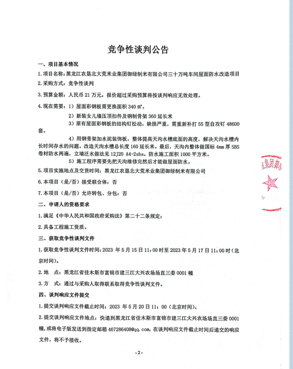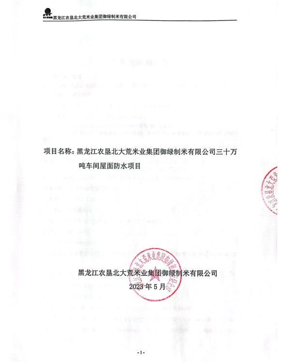 黑龍江農墾北大荒米業集團御綠制米有限公司三十萬噸車間屋面防水改造項目招標公告