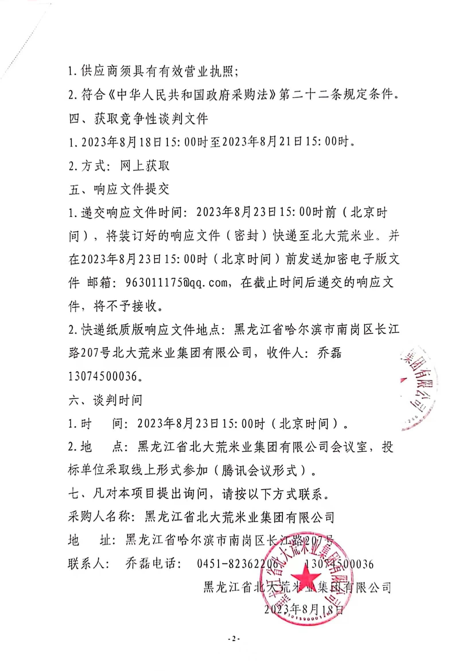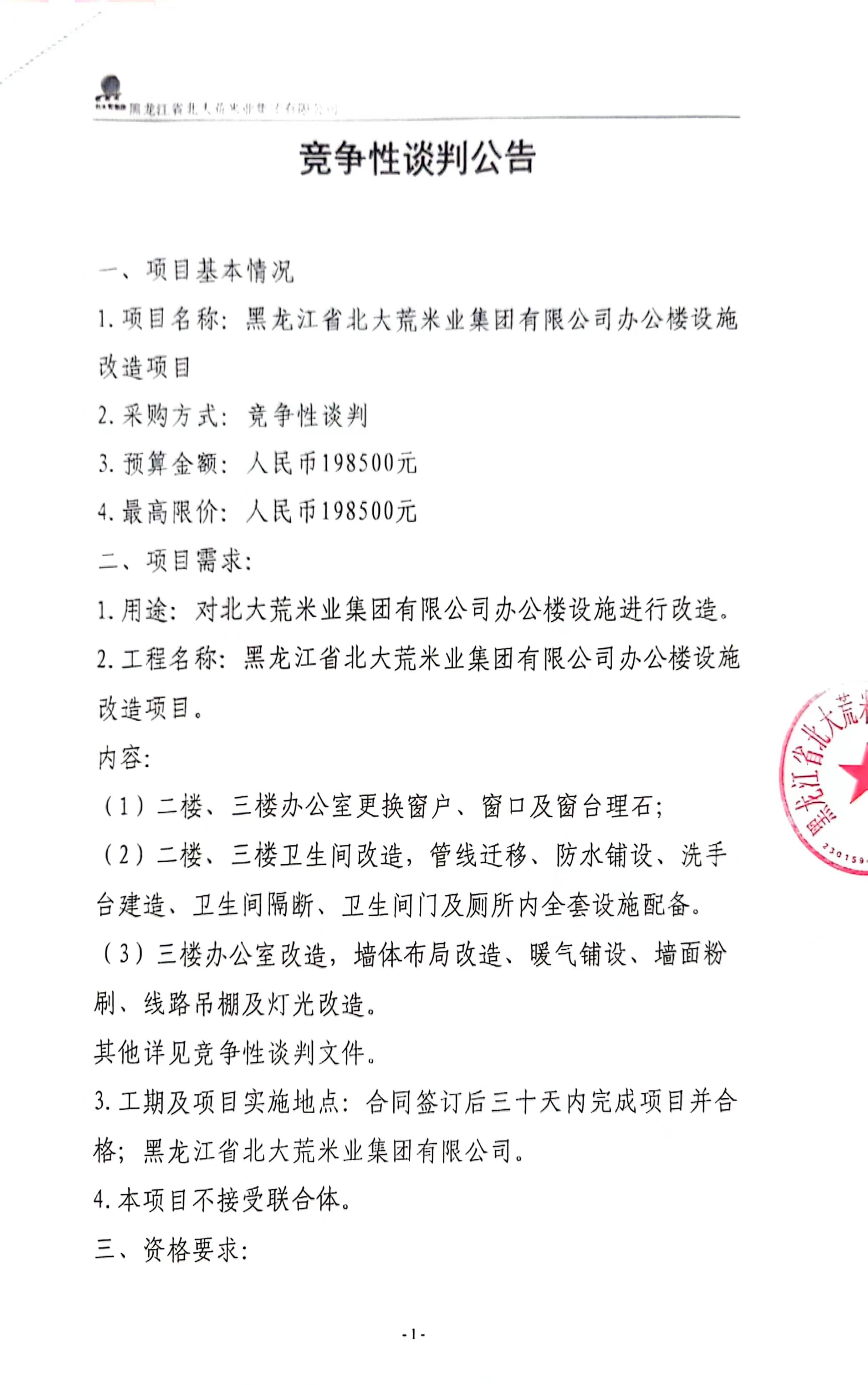 黑龍江省北大荒米業集團有限公司辦公樓設施改造項目競爭性談判公告