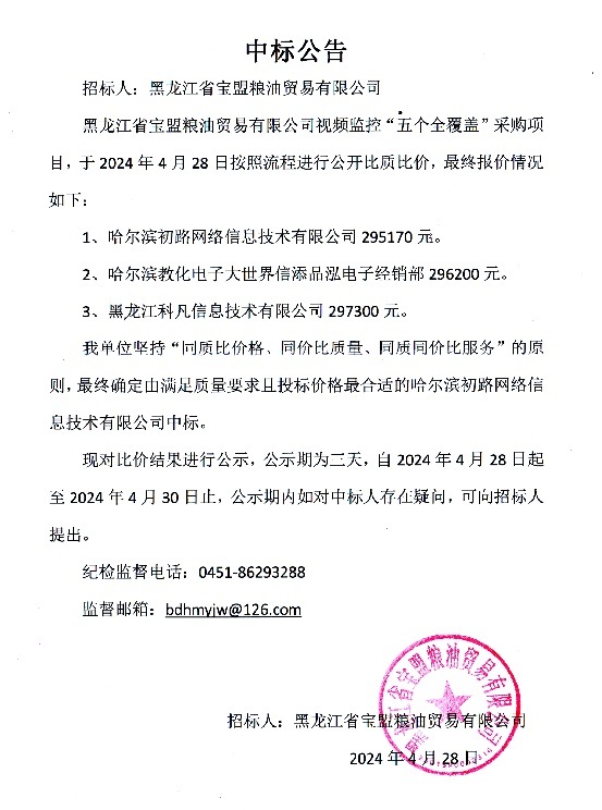 黑龍江省寶盟糧油公司五個全覆蓋建設項目中標公告