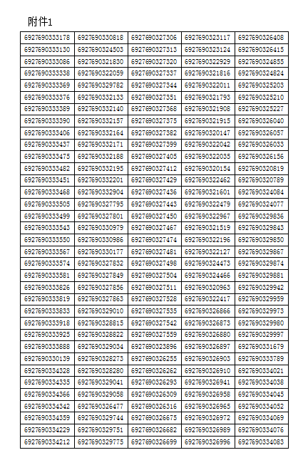 因公司發(fā)展需要,部分產(chǎn)品包裝已經(jīng)退出市場,不再進行銷售。附件1中條碼,公司已于2023年7月前停用,相對應產(chǎn)品包裝同時退出市場;附件2中條碼,公司已于2024年4月前停用,相對應產(chǎn)品包裝同時退出市場。現(xiàn)對公司停用條碼進行公示,如在市場上發(fā)現(xiàn)以下產(chǎn)品條碼及包裝,則可視為假冒產(chǎn)品處理,黑龍江省北大荒米業(yè)集團有限公司將追究相應的責任。