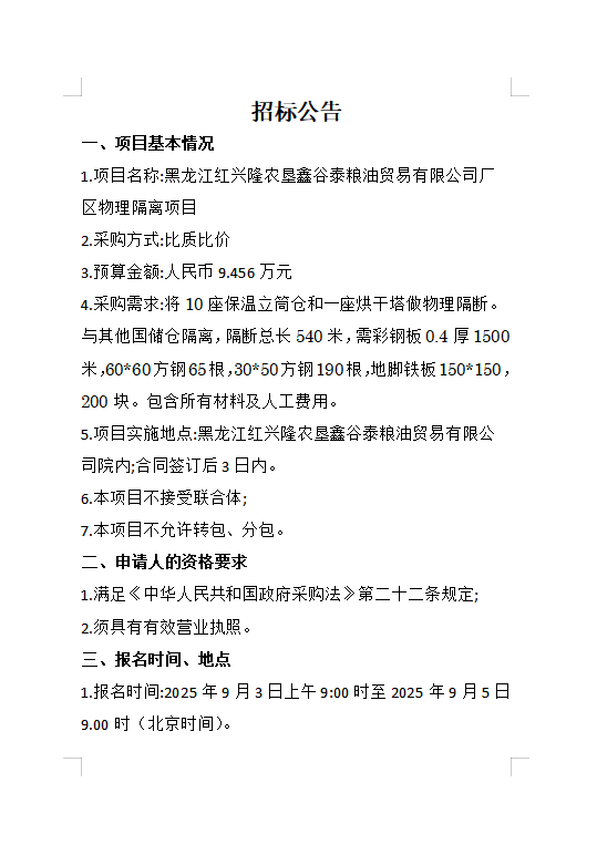 鑫谷泰糧油貿易有限公司廠區物理隔離項目