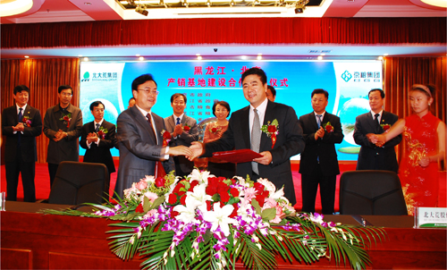 北大荒股份公司董事長王道明表示,新糧即將上市之際,在北大荒建設產銷基地項目意義不同尋常。特別以產業化龍頭企業為紐帶,產區企業和銷區企業進行面對面的有效對接,一定能在保證國家糧食安全的同時促進農業增效、農民增收,搞活糧食流通。